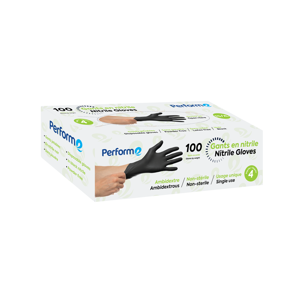 Gants de nitrile jetables noir 4 mil grandeur Extra-Large. 100 gants par boîte.