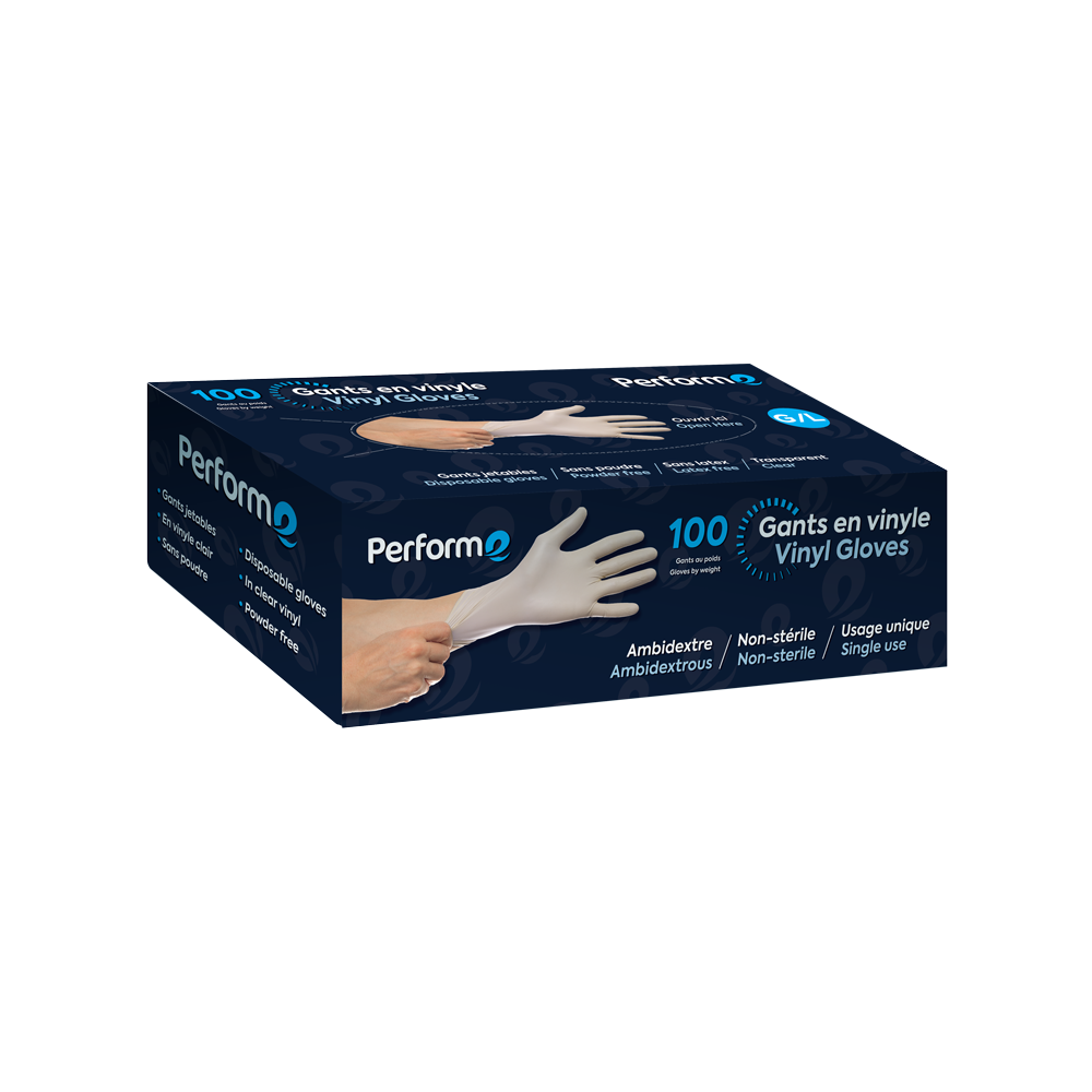 Gants de vinyle jetables transparent, grandeur Large. 100 gants par boîtes. Sans poudre.